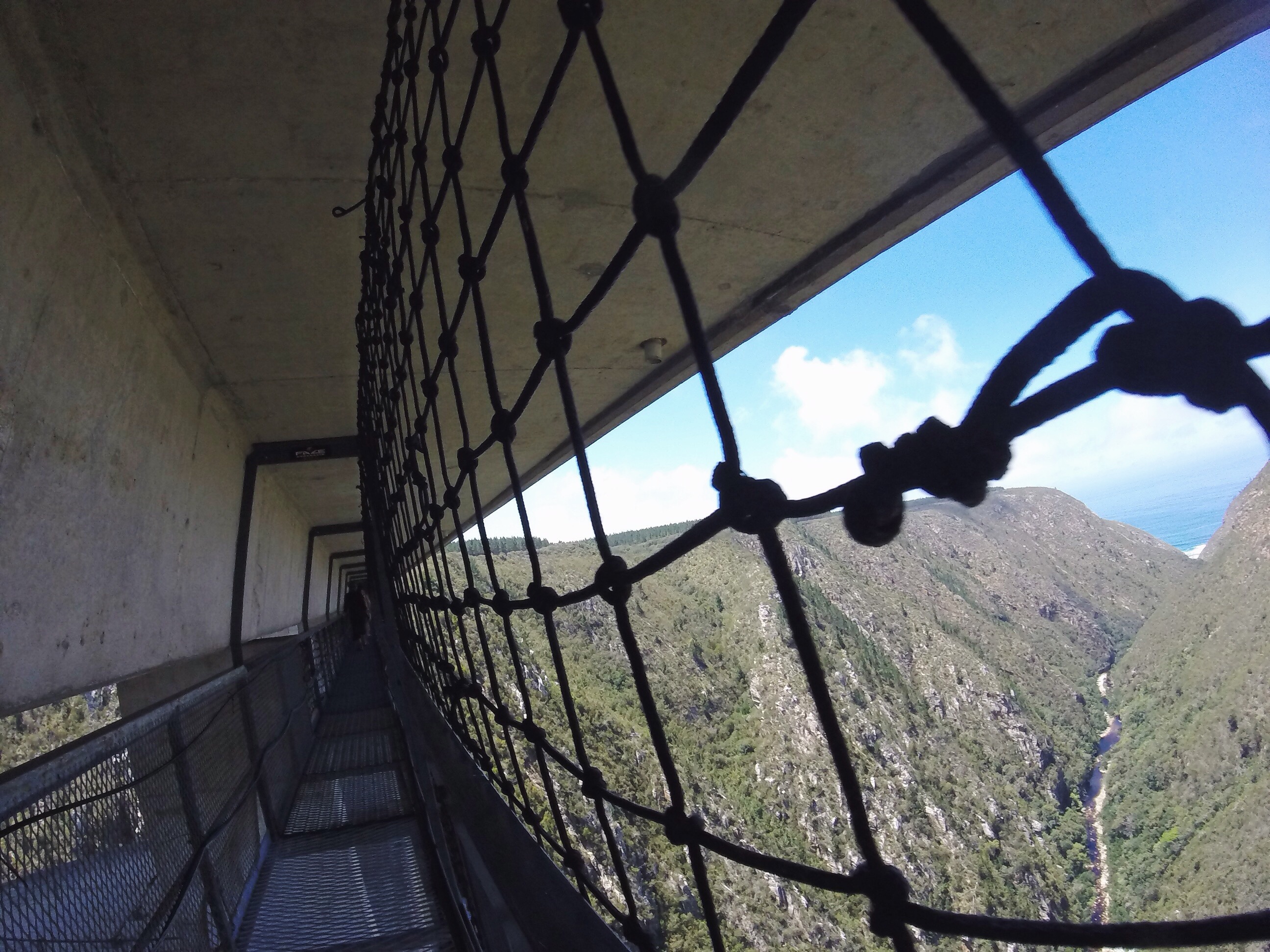 The Bloukrans Bungee is a whopping 216m jump. Located between Nature’s Valley and Storms River, it is an easy stop along the Garden Route. Once you arrive at the bridge, it is all very efficient. Face Adrenalin, the company running the bungee, does hundreds of jumps each day, so at this point, they have it down to a fine art. First things first, you check in, and are then weighed, which was almost as terrifying as the jump itself! Next you harnessed up, and then it’s time to walk across the underside of the bridge to the bungee point. Known as the ‘bridgewalk’, this is an option for people wanting to get up close to the edge without the pressure of having to jump.