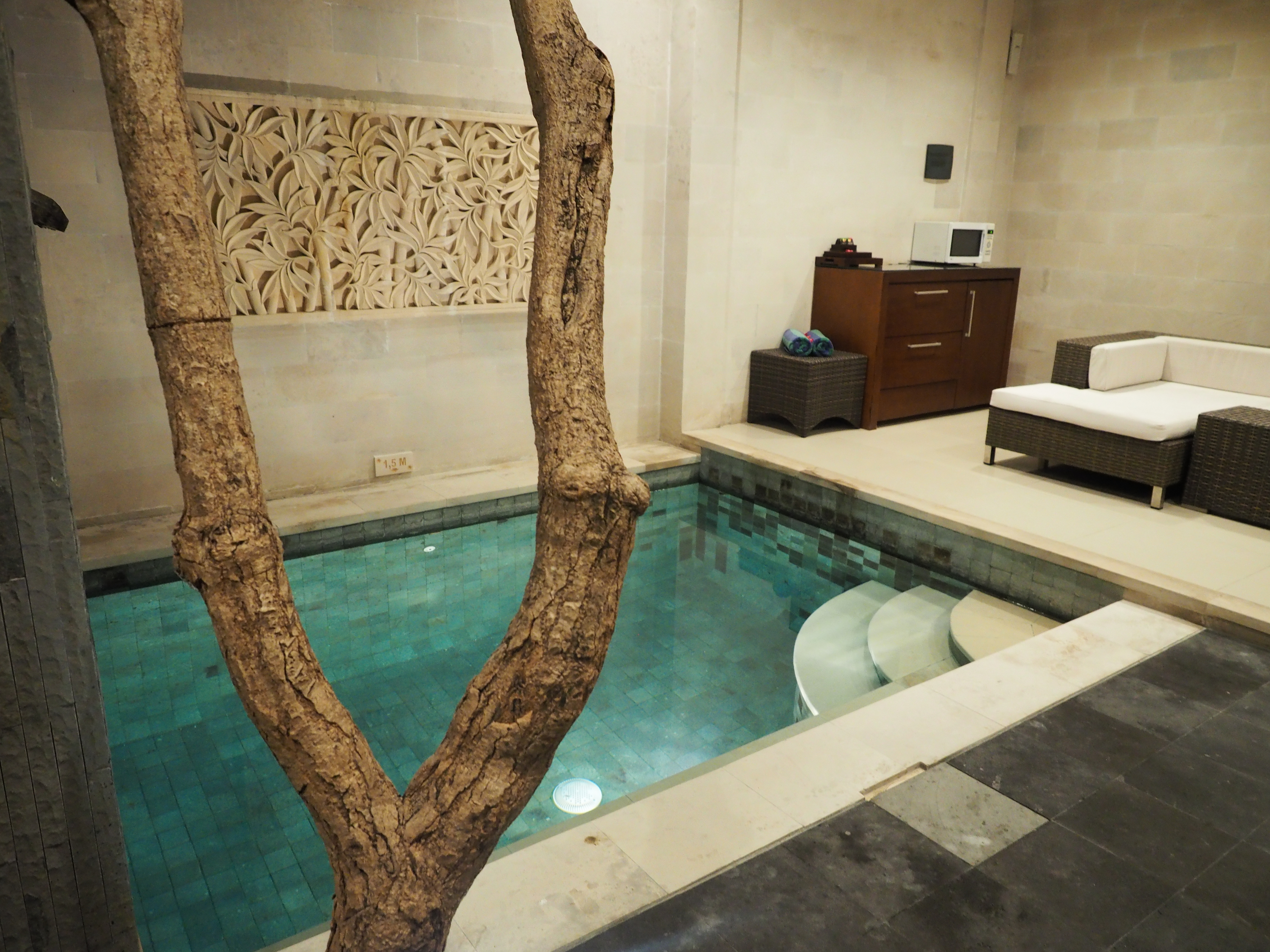 I had planned to settle straight into bed but my little plunge pool just looked far too enticing to pass up! So I threw on my bathers and sunk into the wonderfully temperate water and relaxed several hours away.