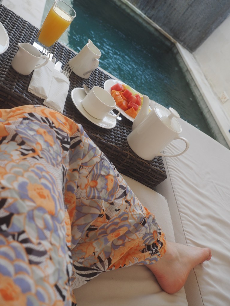 After a wonderfully relaxing snooze I awoke to fresh fruit, waffles and fresh coffee. I devoured everything by my little pool and then got ready to go see some Balinese temples.