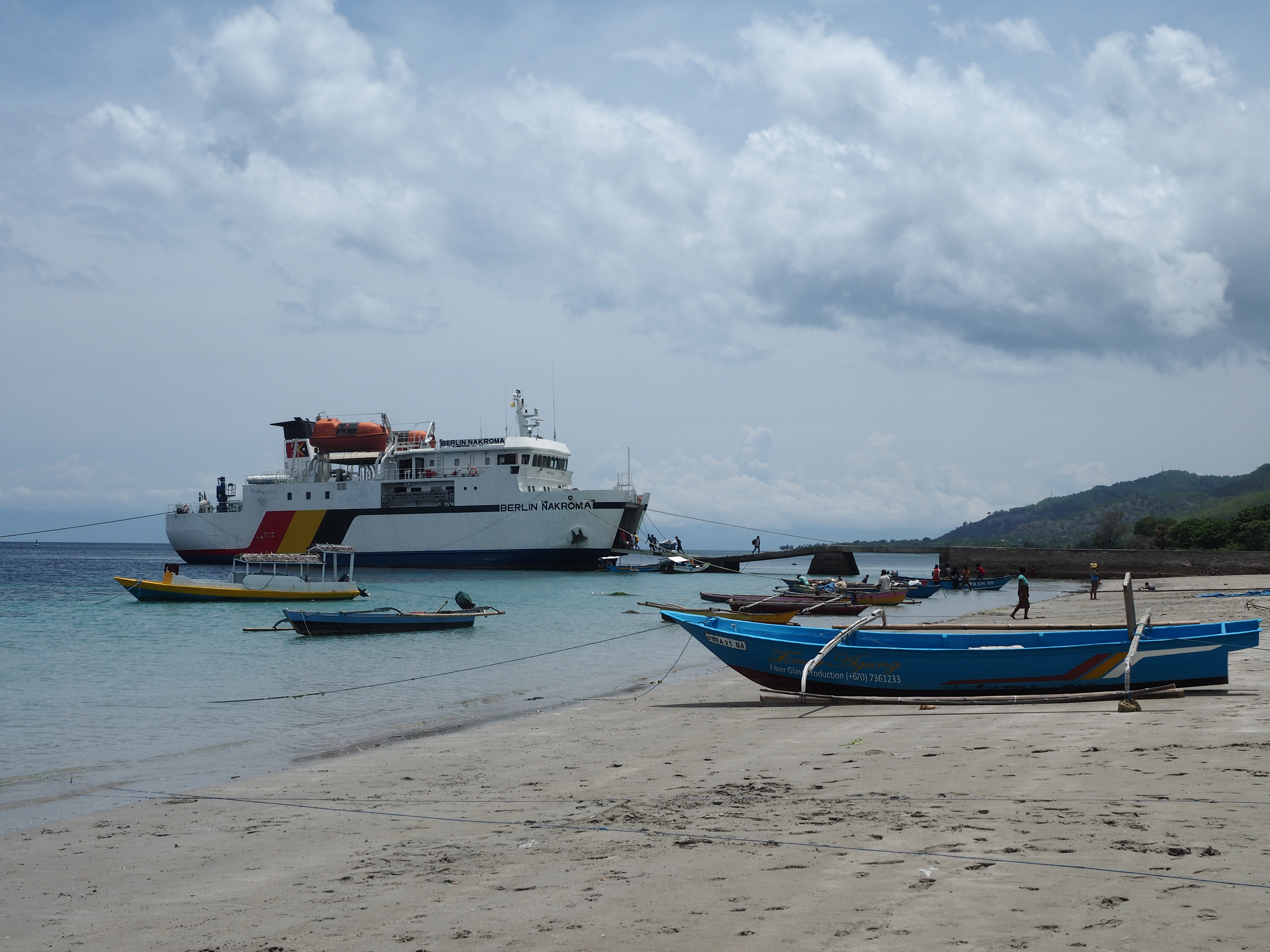 The Berlin Nakroma Ferry was gifted to Timor-Leste by Germany a number of years ago. Since it arrived it was used to make twice weekly trips to the Oecussi (oh-eh-cue-see) enclave and once weekly trips to Atauro. This is the only form of ‘public transport’ to Atauro and it does not just bring passengers, but also brings valuable fuel, foods and resources.