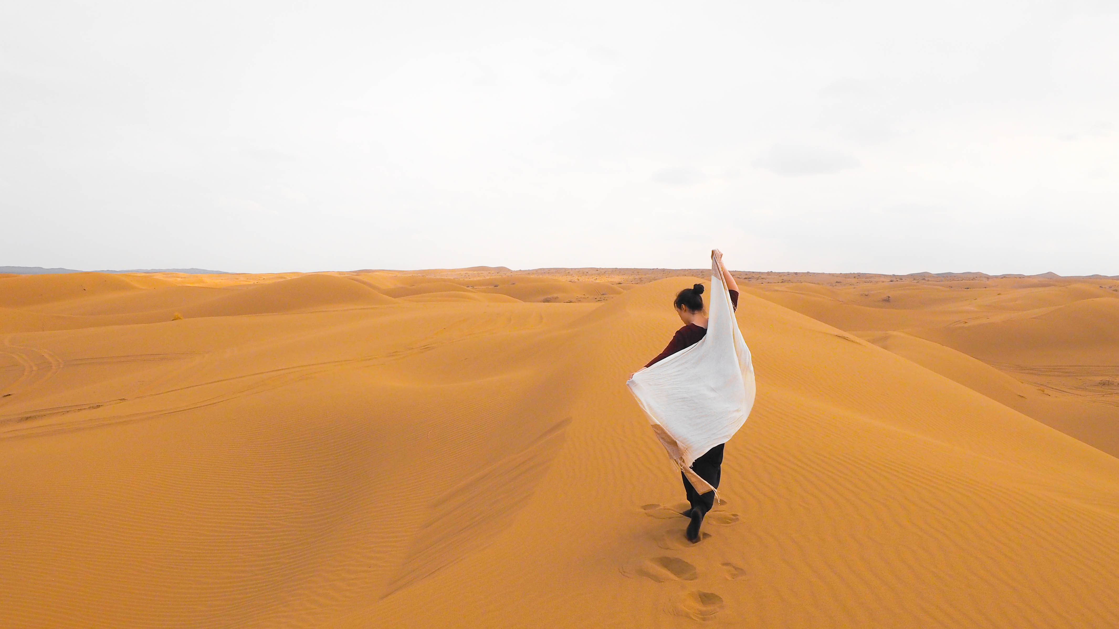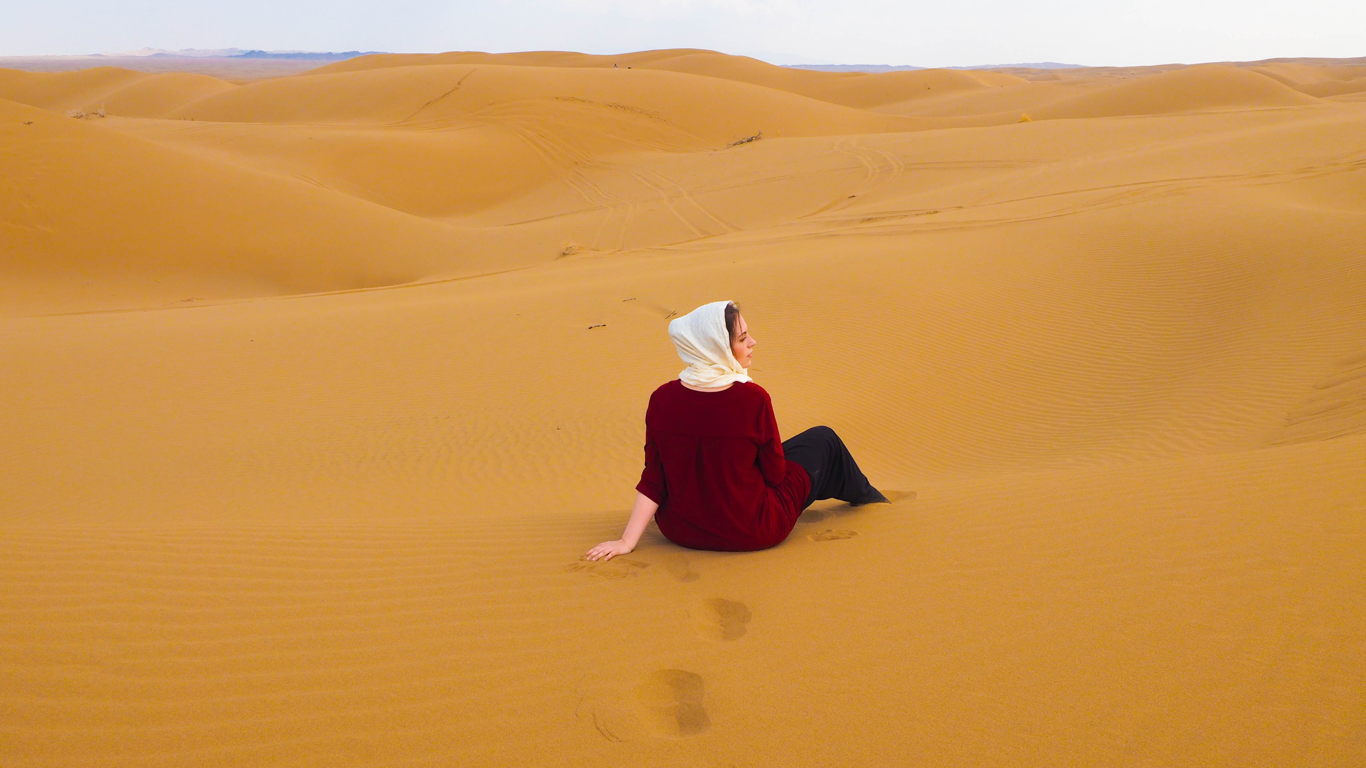 Just as soon as it came off, it went back on, and I spent my precious last moments in Maranjab feeling the sand squish underneath my feet, allowing my eyes to rove over the seemingly endless dunes and soaking up the sun into my sparsely showing skin.