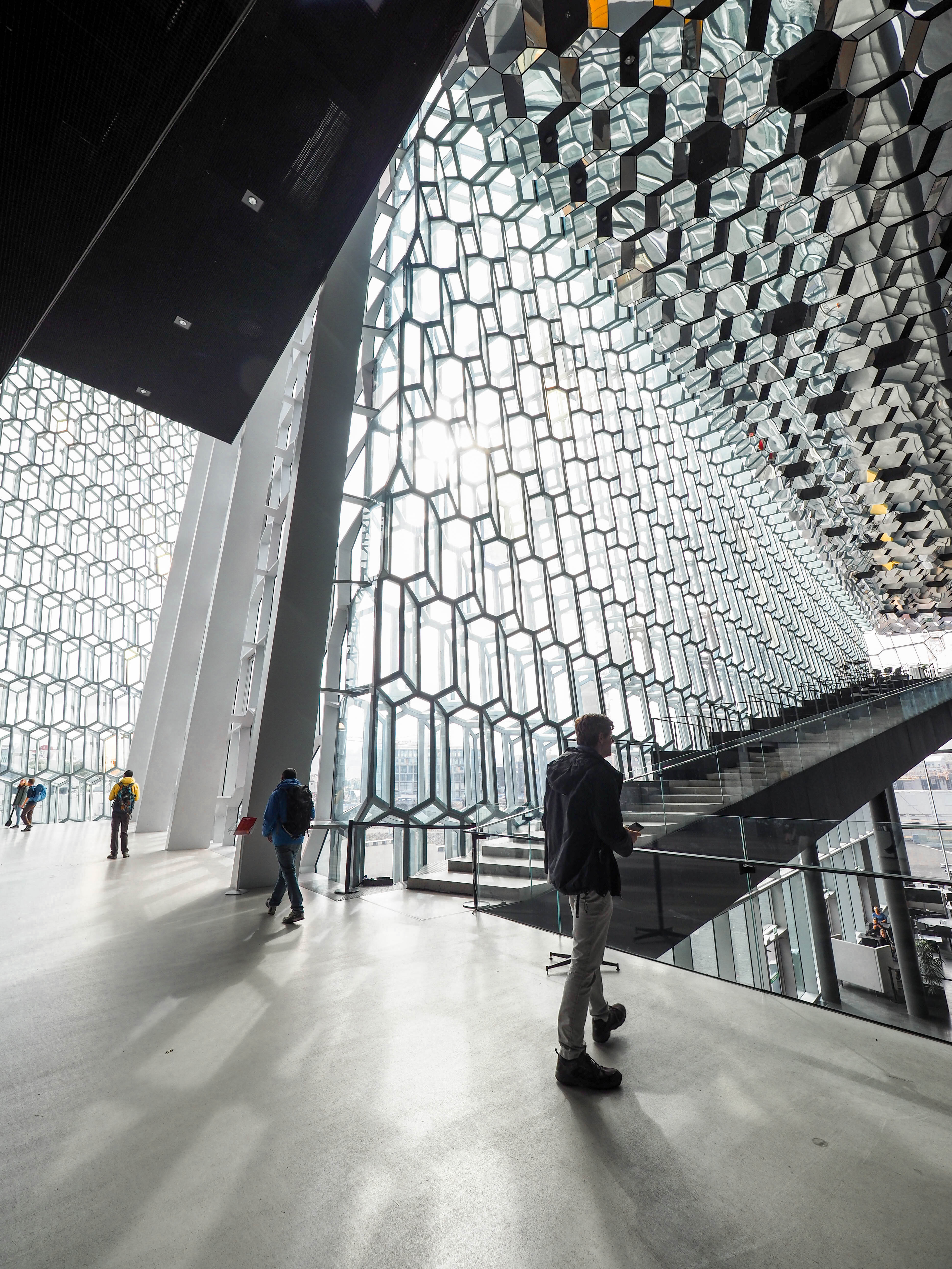 After changing into my deliciously thick and comfortable merino socks, I headed off to the concert hall of Reykjavik, the seriously gorgeous Harpa. This building is definitely one of Iceland’s most easily recognisable pieces of architecture, and as an added bonus, it is completely free to go and walk around inside the building. Iceland is notoriously exxy, so anything that won’t cost a pretty penny is definitely worth doing!
